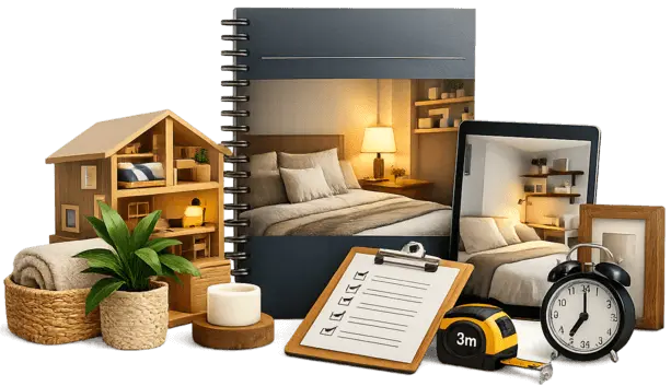 ✅ Un método claro para reorganizar estratégicamente tu dormitorio sin remodelaciones ni gastos innecesarios. Incluye instrucciones simples para optimizar la posición de la cama, el orden visual y la atmósfera del espacio.